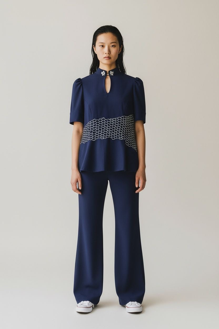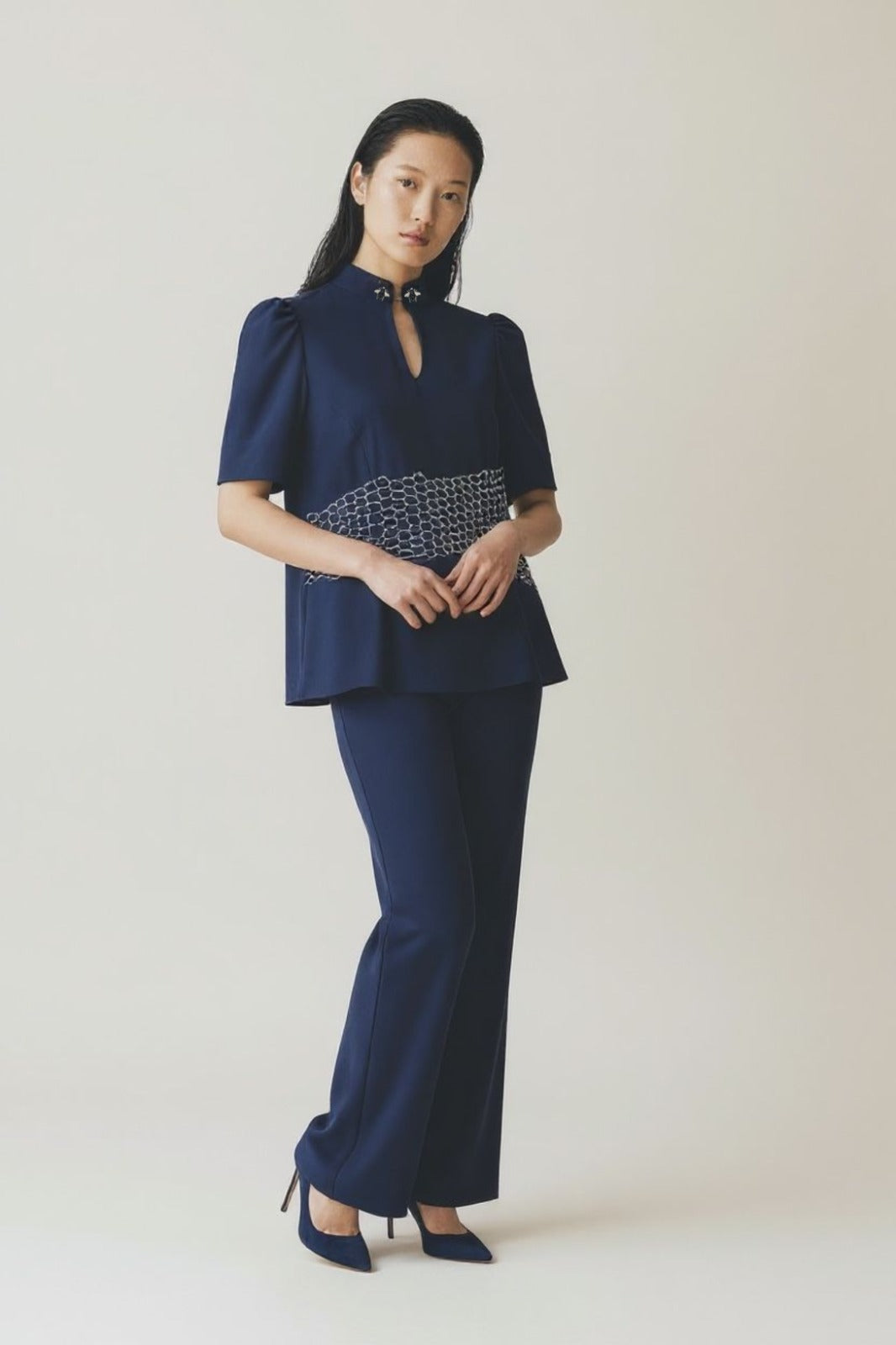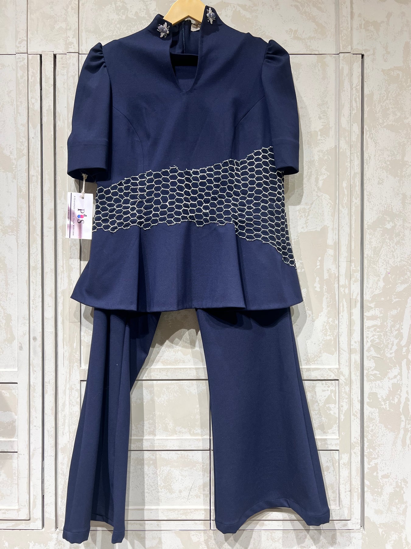 • Two-piece co-ord set: Corset-cut top + Plain flared pants