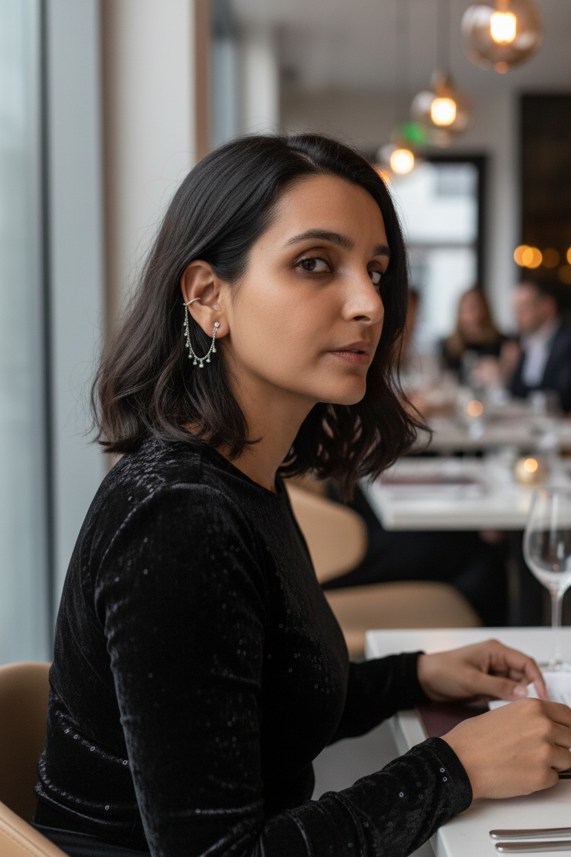 The sleek ear-climber silhouette offers a secure, comfortable fit, while the cascading crystal drops add effortless drama — making Celeste perfect for both everyday chic and evening glamour. Wear it solo for a statement look or layer it with minimal studs for a styled-up ear moment.