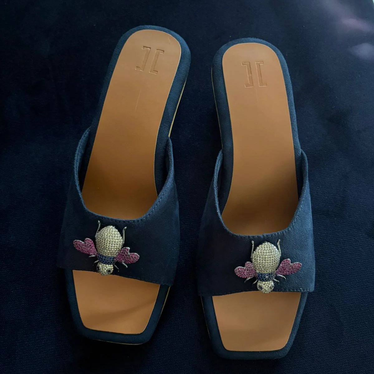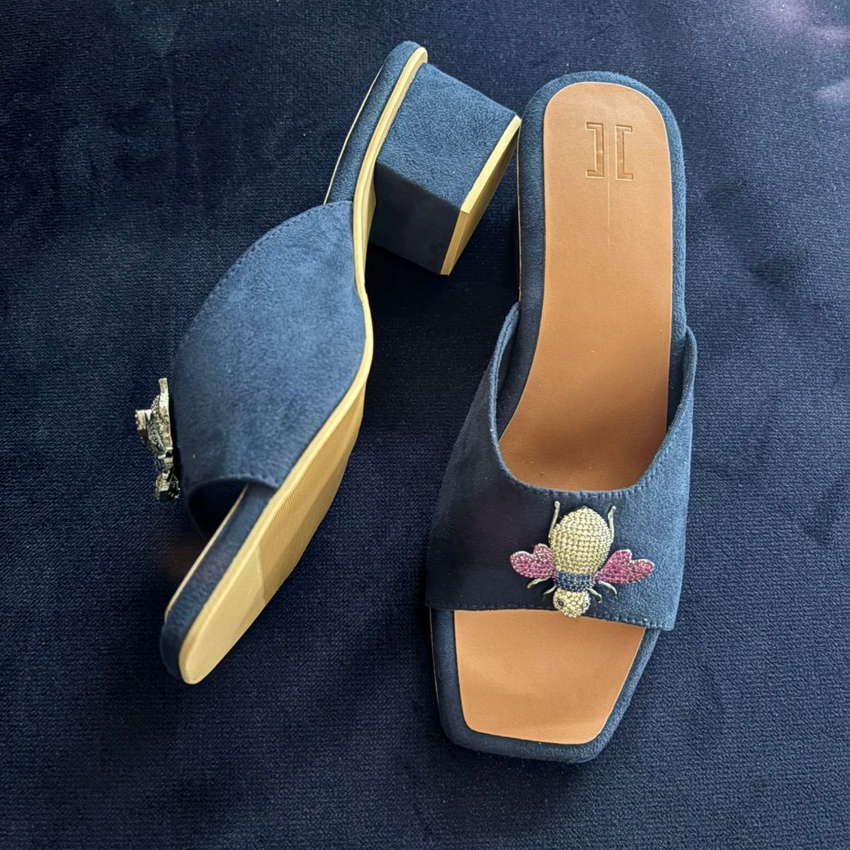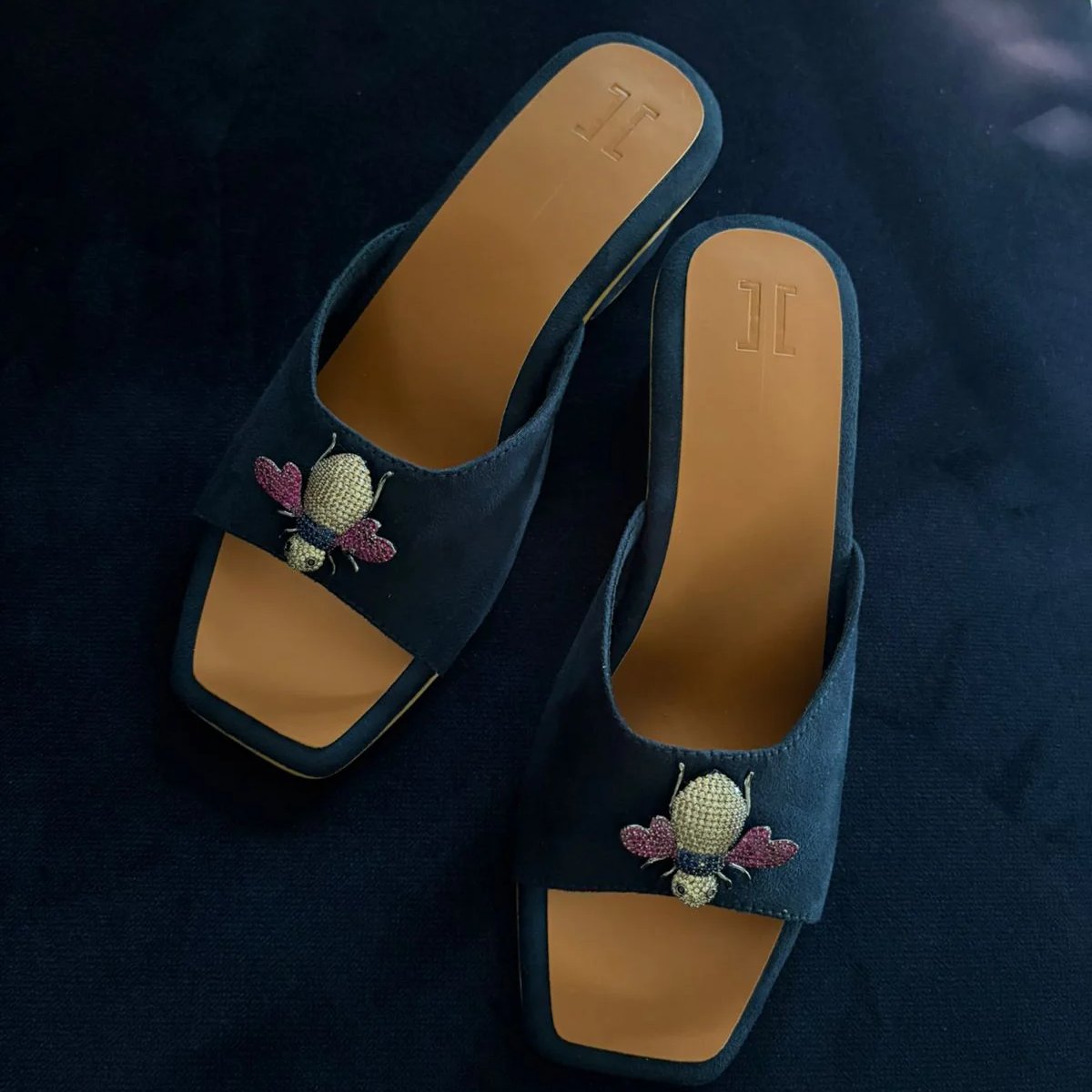 Handcrafted in faux suede. Featuring our Gilded Hive Bee motif in the centre in an edgy heel design inspired by our logo ' ][ '