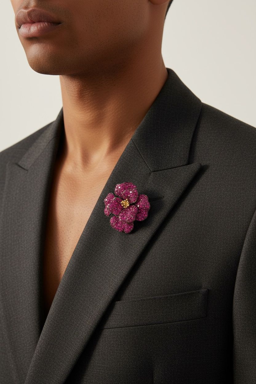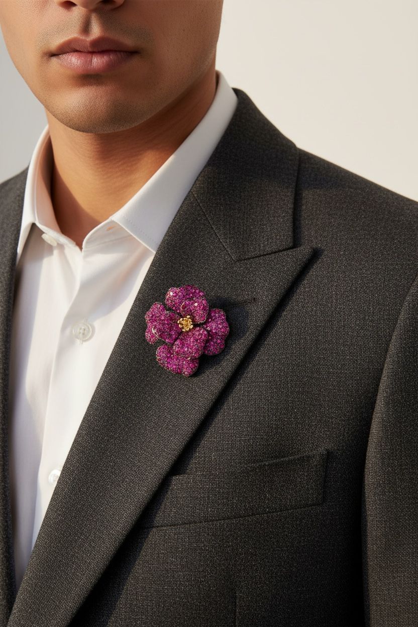 The Bougainvillea Bliss Brooch by WrapGame is a radiant tribute to nature’s finest. Inspired by the vibrant blooms of bougainvillea flowers, this mens brooch features intricate detailing, bold color tones, and luxe shine—all packed into one elegant lapel pin. Whether you’re styling it as a brooch for women/men, a classy coat brooch, or pairing it with a festive saree, this piece adapts beautifully to every outfit and occasion.