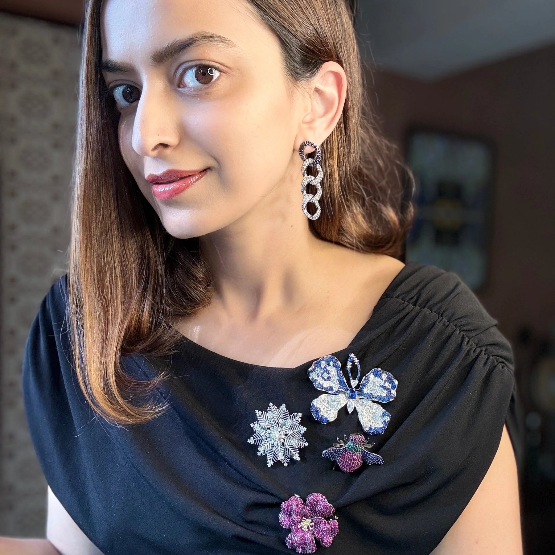 Equally perfect as a brooch for suits, blazers, kurtas, or sarees – this piece is loved across collections.